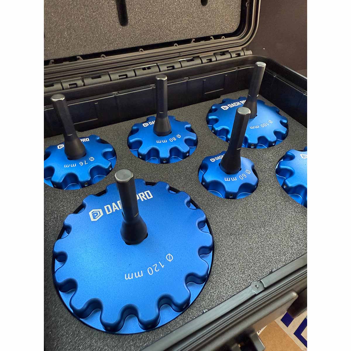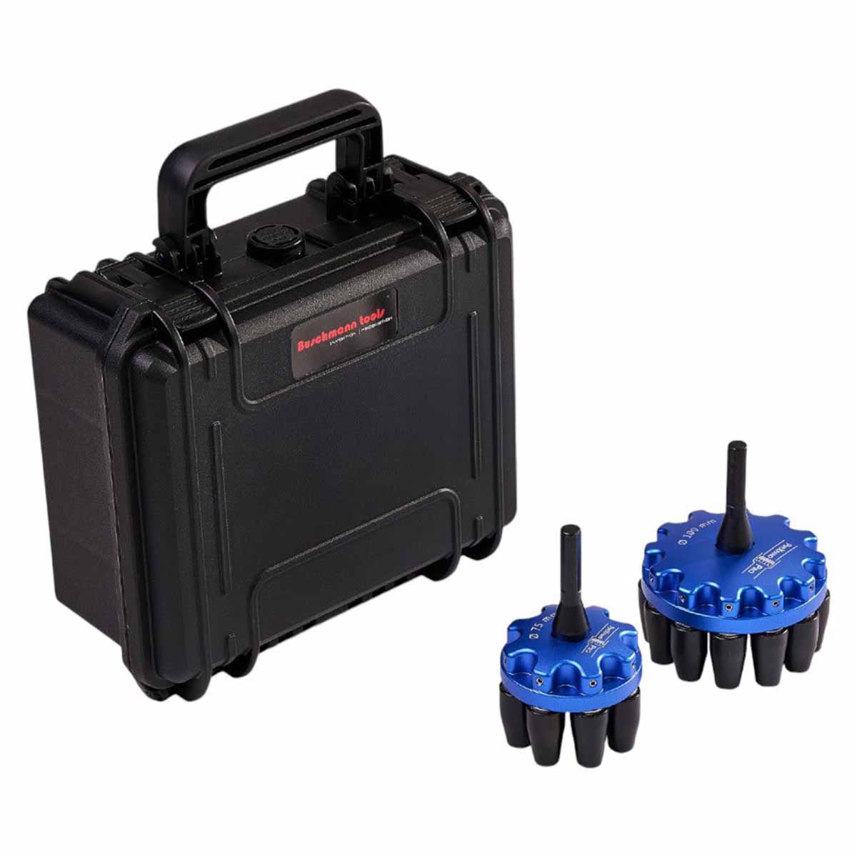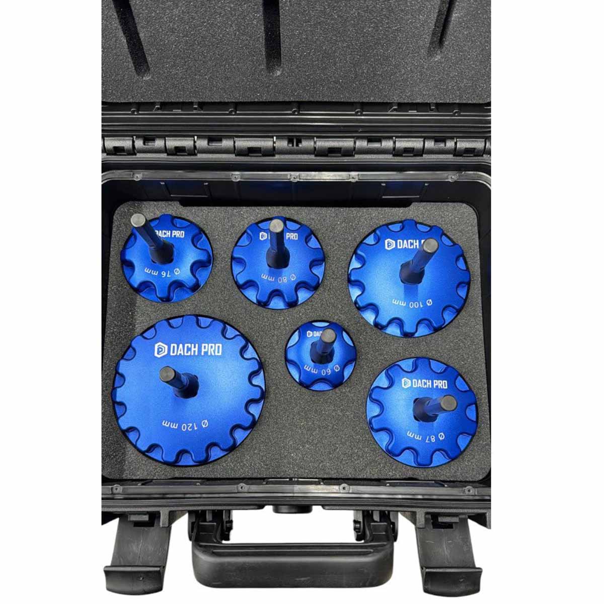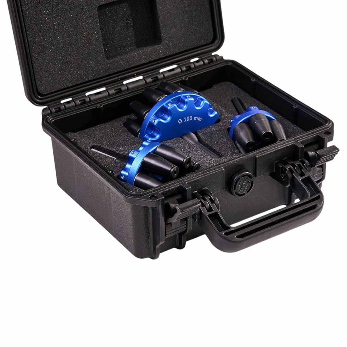 PipeXpand PRO fås i forskellige størrelser: 80 mm, 100 mm og 120 mm. Et særligt højdepunkt er det praktiske sæt, der kombinerer størrelserne 80 mm og 100 mm i et robust etui i militærkvalitet.