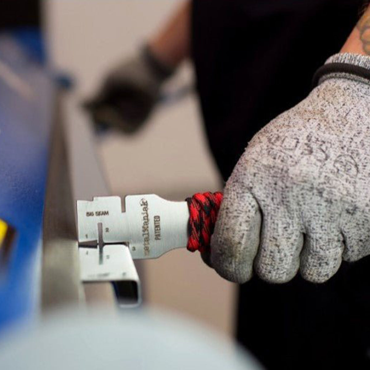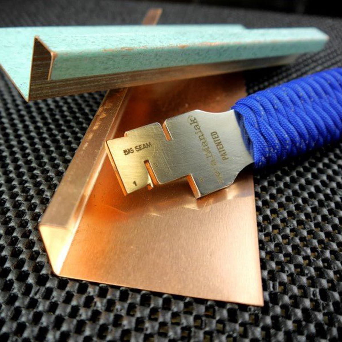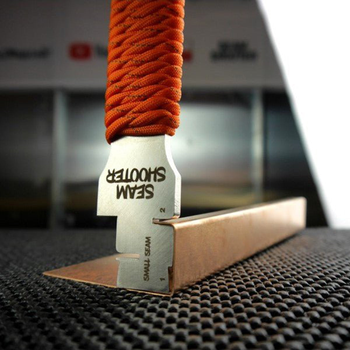 De MetalManiak Seam Shooter med Paracord-håndtag er en innovativ og praktisk Værktøj til tagdækkere og tagdækkere, som er specielt designet til Arbejde med stående fals blev udviklet på bukkemaskinen. Dette patenteret system letter præcis positionering af ark til ensartede og dimensionsnøjagtige stående sømme at producere – en afgørende faktor for professionelt tagarbejde og et must i moderne tagdækning.