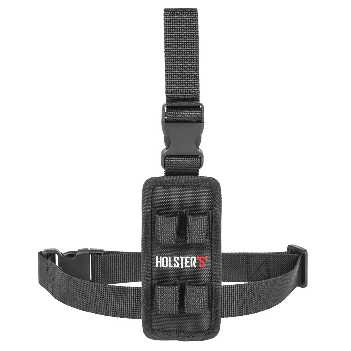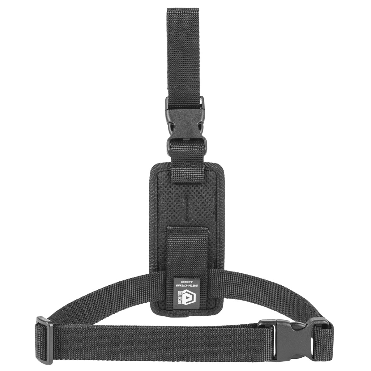 - 2 leg straps horizontally positioned with quick-release fasteners