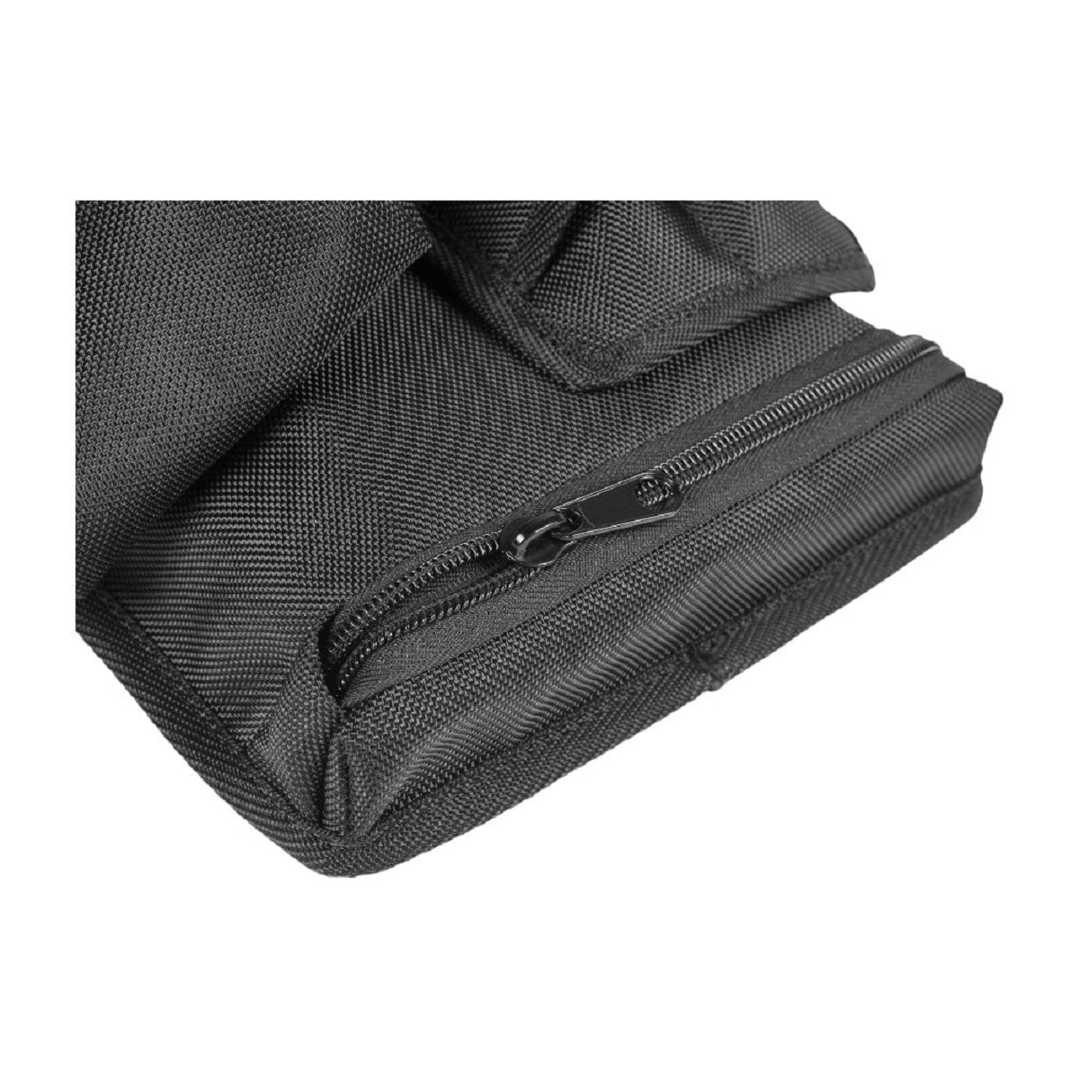 En la parte posterior del Holster Zip hay un compartimento de malla con cerradura y cremallera. Aquí puedes Mantenga las llaves, el efectivo, las tarjetas de débito o su teléfono celular seguros y separados del área de herramientas. La red de malla fina proporciona visión general y ventilación adicionales, ideal para largas jornadas de trabajo en el tejado, en el taller o en la obra.