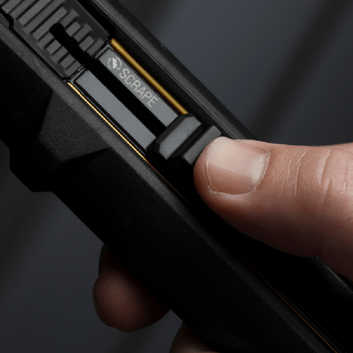 Esta herramienta ofrece innumerables aplicaciones posibles. En el Modo raspador Elimina fácilmente pintura, masilla, adhesivos o etiquetas de ventanas, espejos y azulejos. Esto lo hace ideal no solo para trabajos de techado, sino también para trabajos de detalle en obras de construcción. Modo cuchillo es ideal para cortar cartón, vinilo, plástico o cuerda: trabajos que son Profesional de techos Industria diaria.