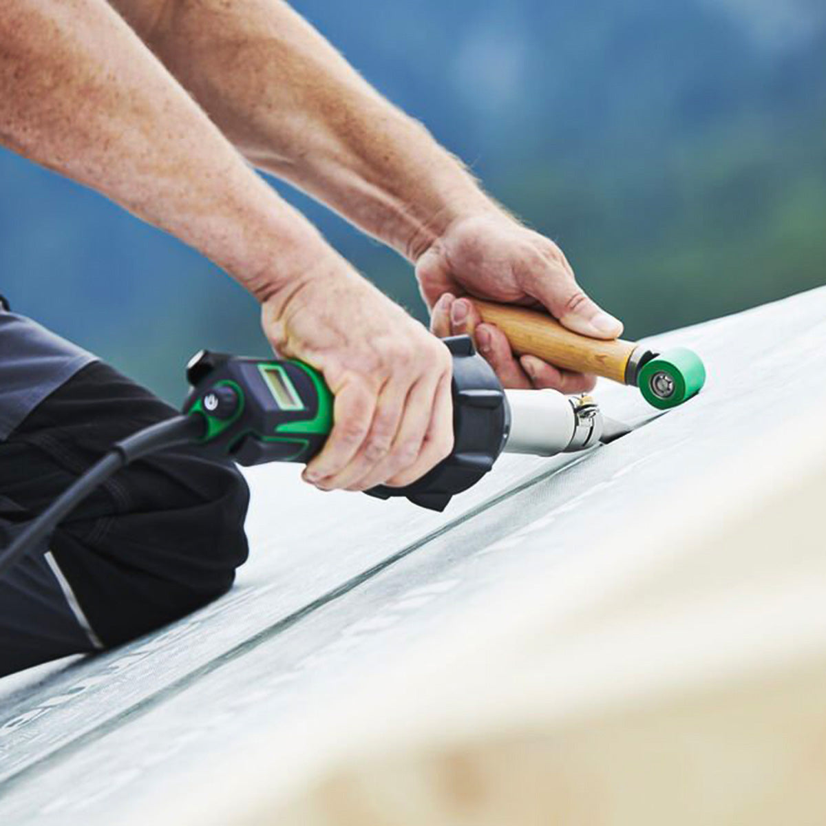 Le LEISTER Le TRIAC AT est un pistolet de soudage portatif puissant et intelligent, spécialement conçu pour répondre aux exigences élevées du secteur de la toiture. Ce pistolet de haute qualité Outils pour couvreurs est idéal pour le soudage et le rétrécissement des matériaux plastiques, en particulier les membranes de toiture en PVC et TPO. Avec sa construction robuste, son contrôle précis de la température et sa manipulation ergonomique, le TRIAC AT garantit un travail efficace et professionnel sur le chantier.