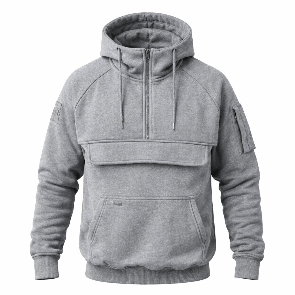 La forme spéciale Capuche avec foulard tube intégré Offre une protection optimale contre le vent, la pluie et la poussière. Ce sweat à capuche est une véritable révolution, surtout sur les chantiers où l'on est souvent exposé aux éléments sans protection. - Espace de rangement pratique et fonctionnalités astucieuses