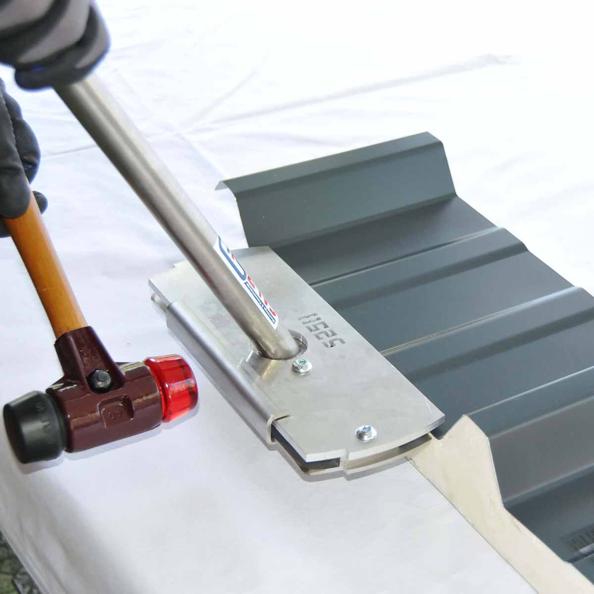 Le Falzsid Trapezblechkanter est une entreprise spécialisée Outils pour couvreurs et couvreurs, qui sert au traitement professionnel et rapide des tôles trapézoïdales et des panneaux sandwich. Ce Accessoires pour couvreurs est utilisé sur les avant-toits et le premier bord des profils de toiture trapézoïdaux et des panneaux de toiture sandwich. différentes versions et des accessoires interchangeables, l'appareil est polyvalent et adaptable et un composant indispensable dans Fournitures de toiture.