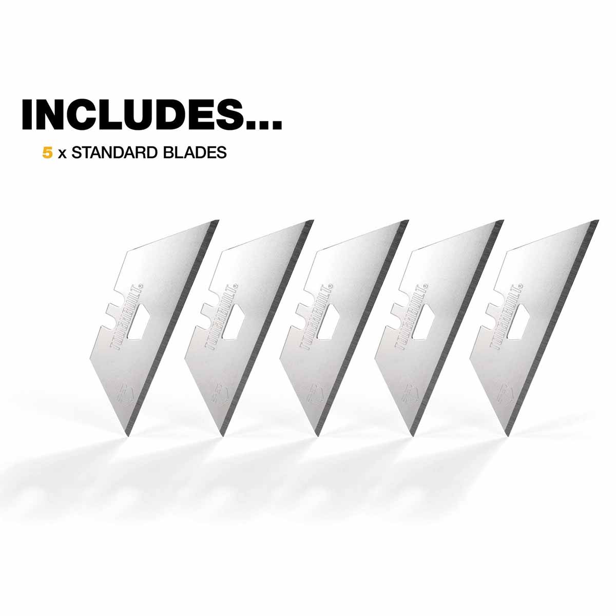 Il coltello multiuso a caricamento automatico ToughBuilt è stato progettato pensando a te, con praticità e versatilità. La nuova lama si carica con una semplice pressione del cursore, permettendoti di tagliare ininterrottamente. Il tagliacorde e l'attrezzo per la leva di questo coltello lo rendono pronto per qualsiasi compito.