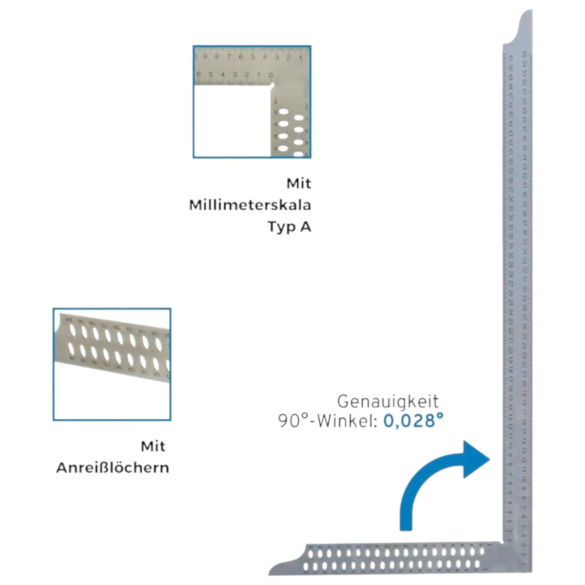 IL Hedue ® - Squadra da carpentiere ZN 800 mm | Goniometro con scala mm tipo A e fori di marcatura è uno strumento indispensabile Attrezzo per tutti gli artigiani addetti alle coperture e un accessorio essenziale per carpentieri, idraulici e costruttori di tetti.