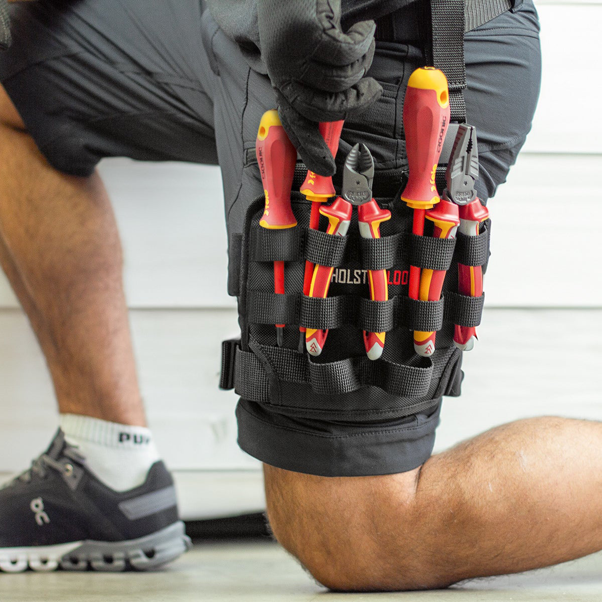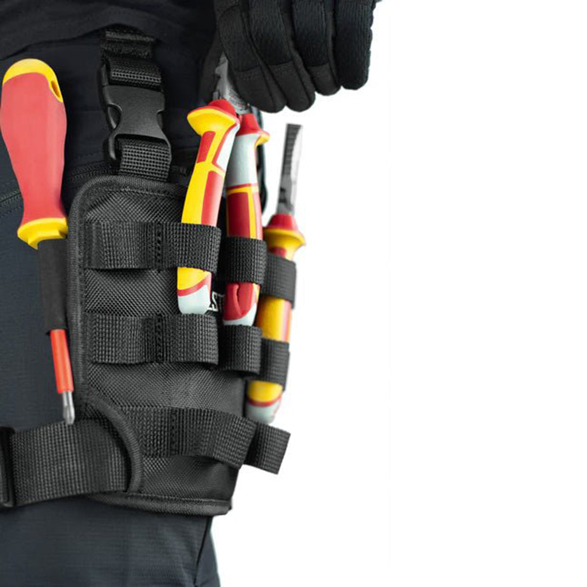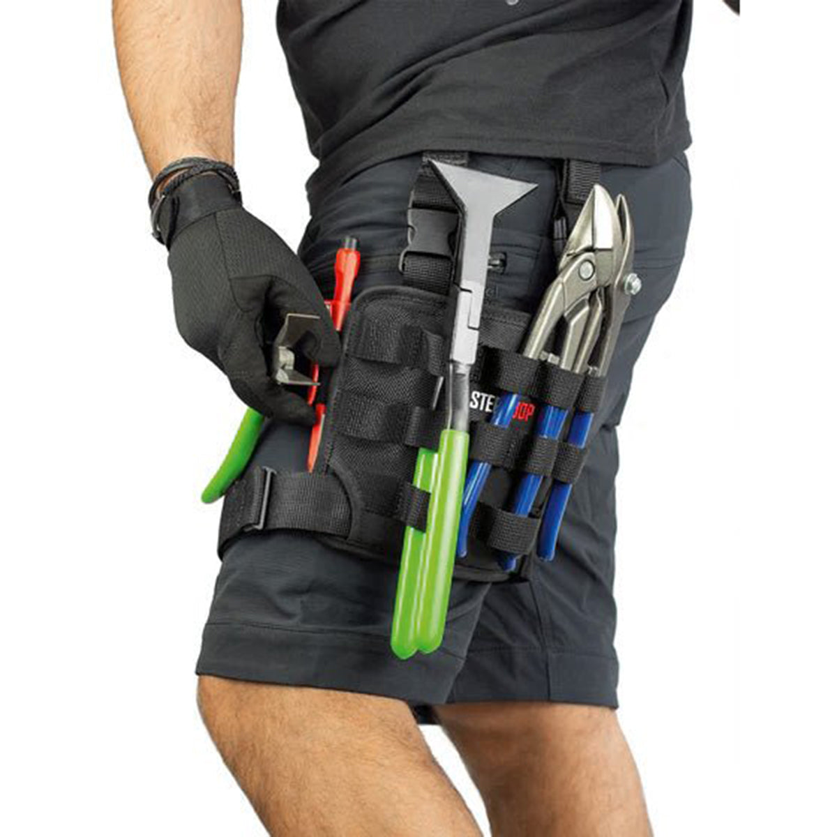 Das Holster-Loop ist ein kompaktes und tragbares Werkzeugholster, das mit verstellbaren Gürtelschlaufen und einem Beingurt ausgestattet ist. Es bietet Platz für die wichtigsten Werkzeuge wie Schraubendreher, Zangen, Hämmer und kleinere Werkzeuge für Spengler. Dank der 12 praktischen Befestigungsschlaufen lassen sich Ihre Werkzeuge übersichtlich organisieren und sind jederzeit griffbereit. Es eignet sich hervorragend für Arbeiten auf dem Dach, bei denen Sicherheit und Bewegungsfreiheit oberste Priorität haben.