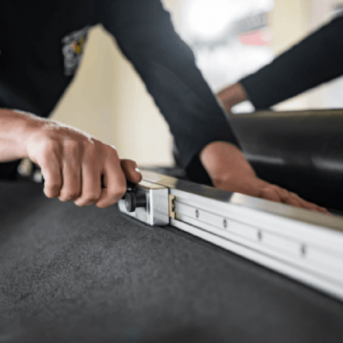 Dank der stabilen Führungsschiene liefert der Bitumenschneider immer absolut gerade Schnitte. Keine ungenauen Handzuschnitte mehr, sondern ein gleichbleibend sauberes Ergebnis.