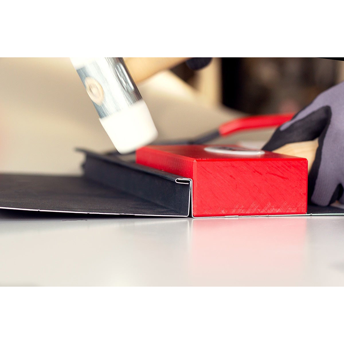 Ob auf dem Dach, an der Blechkante oder beim sensiblen Einpassen von Materialien – der MASC Schonhammer sorgt für kraftvolles, aber schonendes Arbeiten. Er eignet sich perfekt als Dachdeckerwerkzeug und Spenglerwerkzeug und erfüllt höchste Anforderungen auf der Baustelle. Dank seiner auswechselbaren Kunststoffköpfe aus Desmopan ist er besonders materialschonend und verhindert unschöne Spuren auf empfindlichen Oberflächen.