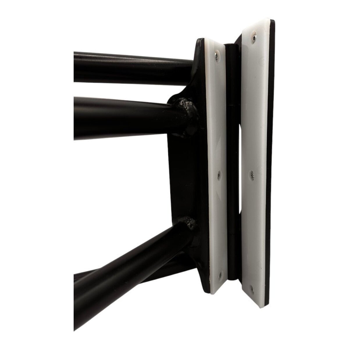 Der Dach PRO - Trauf Master | Falzschließer dient zum schonenden und effizienten Verschließen von Blechen an der Traufe. Durch die speziell entwickelten PVC-Kunststoffbacken wird das Material nicht verkratzt oder verformt, was eine hohe Qualität der Kantung sicherstellt. Das Werkzeug eignet sich ideal für den Einsatz auf dem Dach oder in der Werkstatt, um Bleche professionell zu bearbeiten.